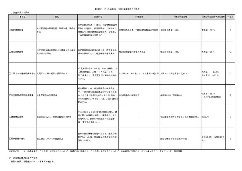 令和6年度に実施した保健事業等について、計画の評価及び見直しの検討を行いました。